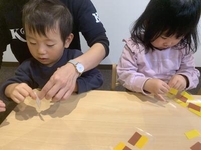 だいち組さんは、のりを使いケーキ作り