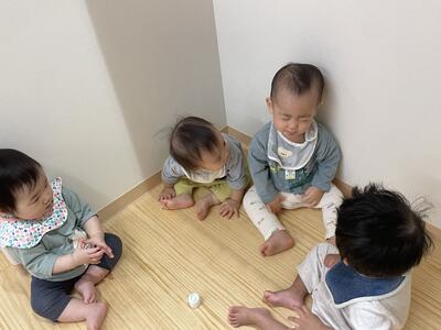すこし肌寒い季節になってきましたが、0才クラスのうみ組さんは室内でも戸外でもたくさん身体を動かしています。
