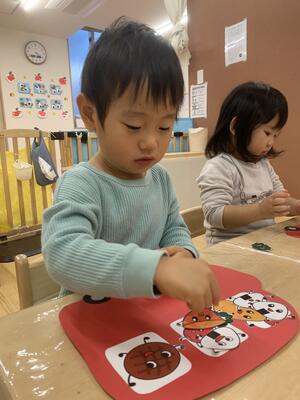 先週は保育室で遊ぶ活動も多く、机上遊びや運動遊びを楽しんでいました♪