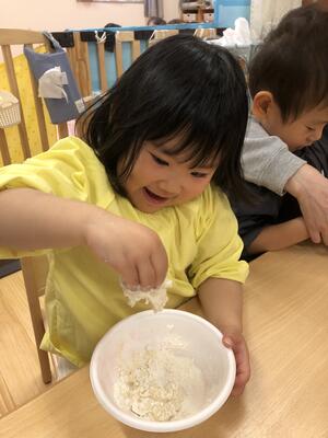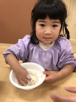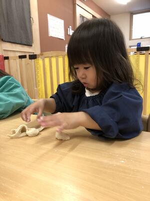 みんな笑顔で、大好きな小麦粉粘土を楽しんでいましたよ。