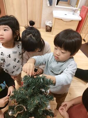 12月に入り、クリスマスツリーを飾りつけ行った子ども達。