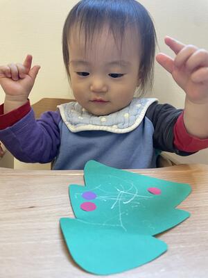 うみ組さんはシールとクレヨンでツリー作り等、様々な製作を行い楽しんでいました♪